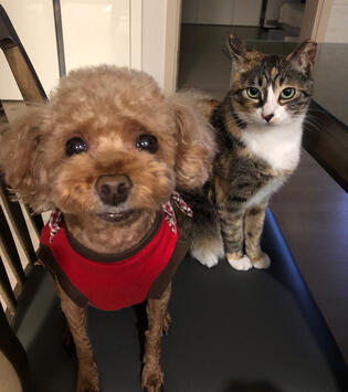 ‣ he has a dog named choco, whom he loves very much. their personalties are similar! he also has cat called bbomi.